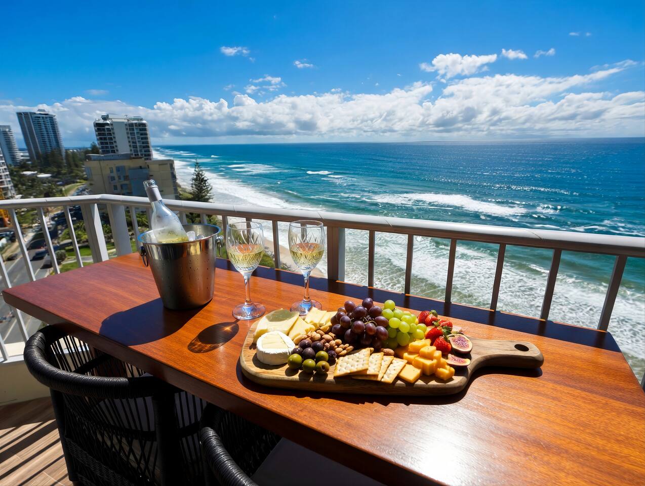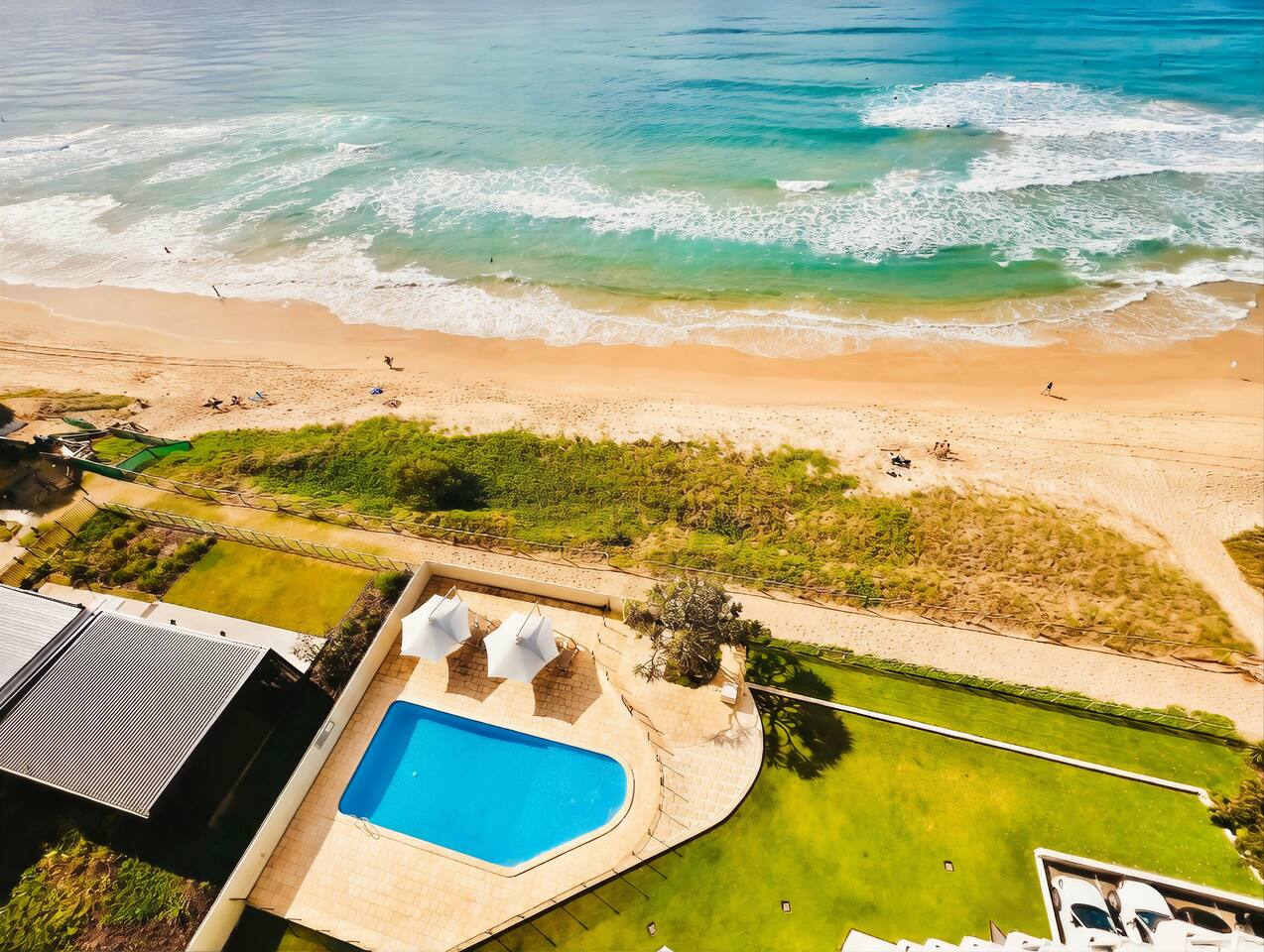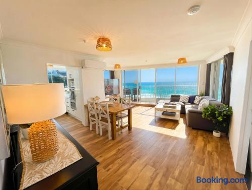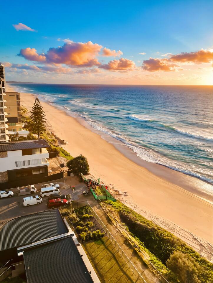 This is the perfect place to relax and unwind. Enjoy a large heated outdoor pool (with a shallow child wading area), comfortable sun lounges, and a spacious BBQ area complete with table, chairs, and a shade sail — all just metres from the ocean. You can literally laze by the pool while listening to the waves. Additional features include: Direct beach access (no roads to cross) to the beautiful patrolled golden beaches right in front of the building A safe, fully fenced grass play area for children Secure underground parking — one dedicated basement car space is included with your stay Parking Note: One secure underground car space is provided. Additional visitor parking is available for up to 6 hours at a time, or you can use street parking for a second vehicle which is free. Everything you need is close by: Trendy cafés are just across the road Tedder Avenue’s fabulous restaurants, shops, and nightlife are only a 5-minute walk away Safe patrolled beaches, children’s parks, and family entertainment are all right on your doorstep Early check-in / Late check-out Can be arranged for an additional fee of $50 per hour (subject to availability).