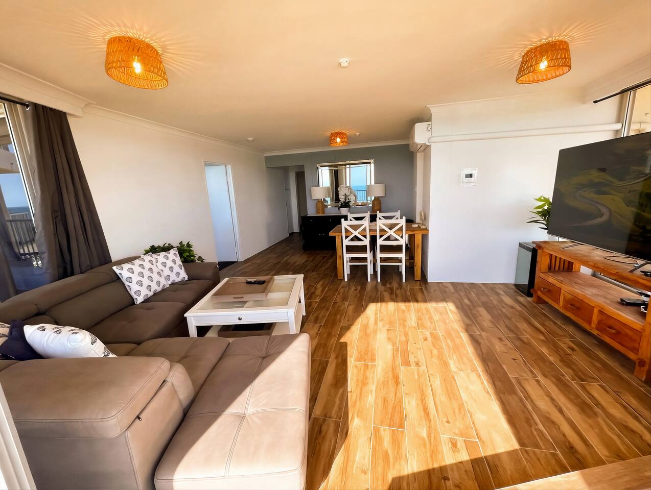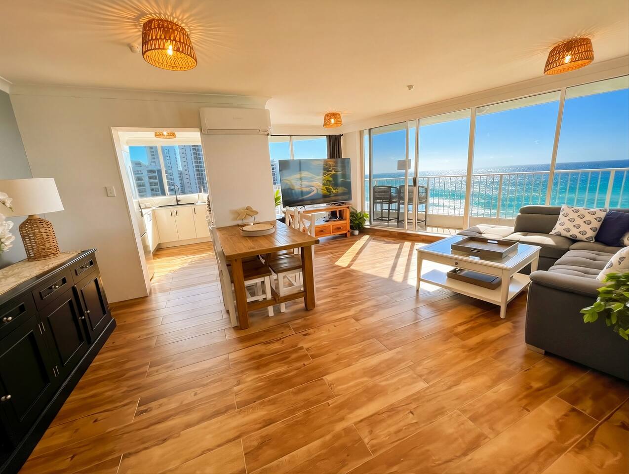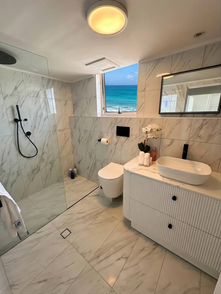 Guests consistently mention: • Uninterrupted ocean views from the living room, balcony and master bedroom • Peaceful Main Beach location — close to Surfers Paradise without the noise • Stylish renovation with premium finishes Absolute beachfront apartment with uninterrupted ocean views from your private balcony. Step straight onto the sand, watch the surf roll in, and enjoy sunset drinks from your balcony bar. This beautifully renovated 2-bedroom, 2-bathroom apartment offers relaxed coastal living with a heated pool, direct beach access and everything you need for a comfortable stay — just a short walk to Tedder Ave cafés and dining. Sleeping Arrangements Master bedroom: Queen bed, ensuite and ocean views (sleeps 2) Bedroom 2: Two single beds with built-in storage (sleeps 2) Living area: Double sofa bed (sleeps 2) Living & Comfort • Air-conditioned throughout • Fully equipped kitchen with stainless steel appliances and Nespresso machine • Comfortable open-plan living and dining area Entertainment • 75” 4K Smart TV with Foxtel Platinum, Netflix and Amazon Prime • Fast Wi-Fi (100+ Mbps) and dedicated workspace Outdoor & Location • Direct access to a patrolled beach • Heated outdoor pool and BBQ area • Balcony dining with bar seating overlooking the ocean • Short walk to Tedder Ave cafés, restaurants and The Spit Perfect for Couples, families and beach lovers looking for a relaxed, beachfront stay with everything close by.