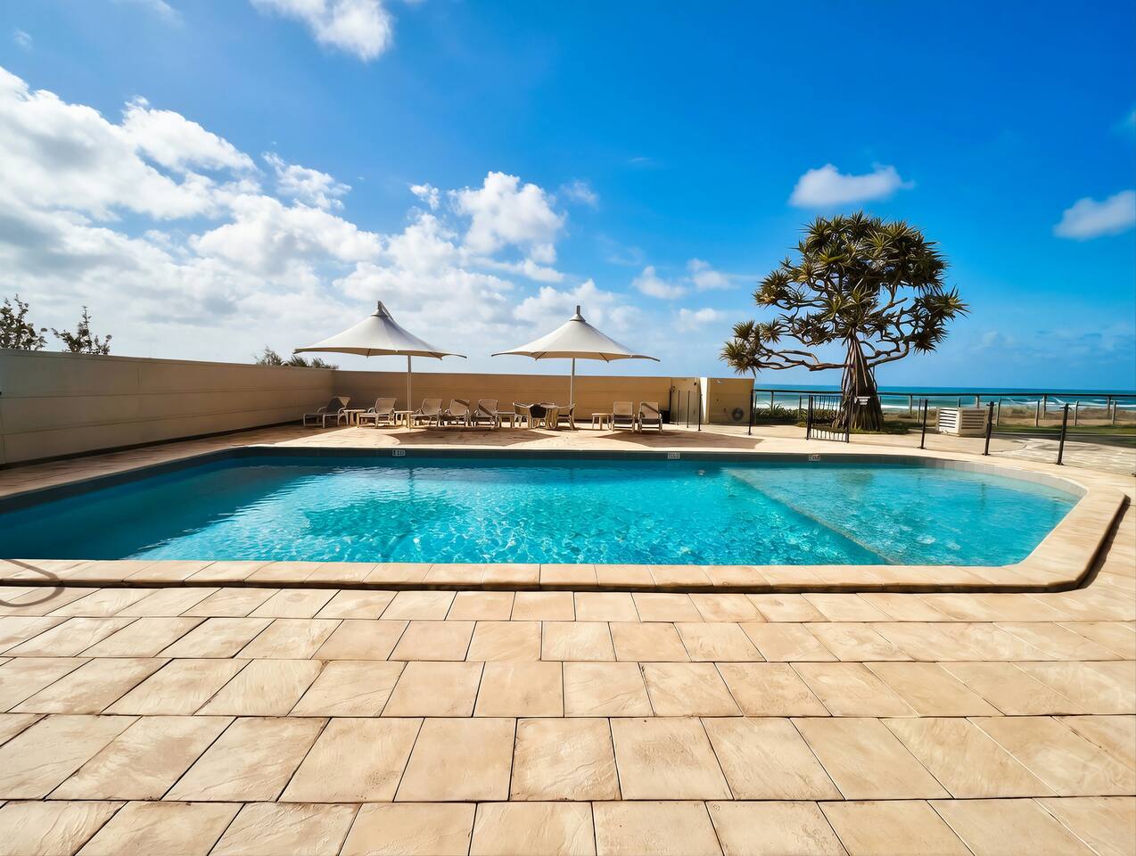 You’ll have the entire apartment to yourself for the duration of your stay. Enjoy exclusive access to the beautiful beachfront pool area, which includes: A shallow child wading pool as well as a deep end for adults. Comfortable sun lounges and umbrellas Poolside tables and chairs A large shared BBQ area with an outdoor dining setting Best of all, you have direct beach access straight from the building — just steps from your balcony to the patrolled beach. No roads to cross!