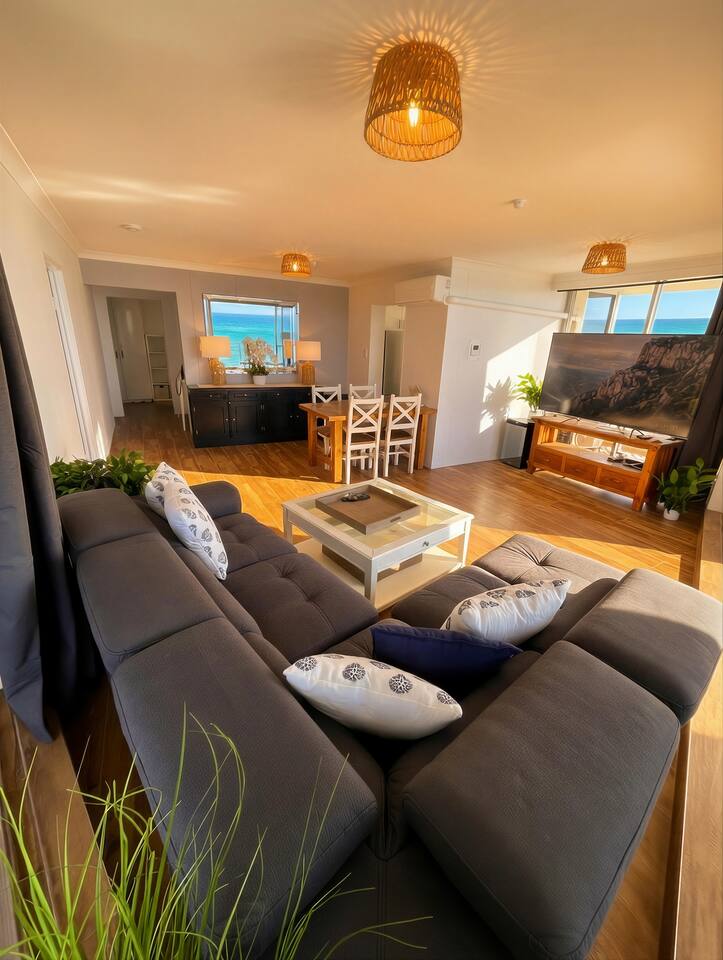Absolute beachfront living with uninterrupted ocean views from your private balcony. Wake up to the ocean, step straight onto the sand, and unwind with a drink at your balcony bar as the sun sets over the water. This fully renovated 2-bedroom, 2-bathroom apartment features a heated pool, air-conditioning, a fully equipped kitchen, and fast Wi-Fi — all just a short stroll to Tedder Ave cafés and dining.