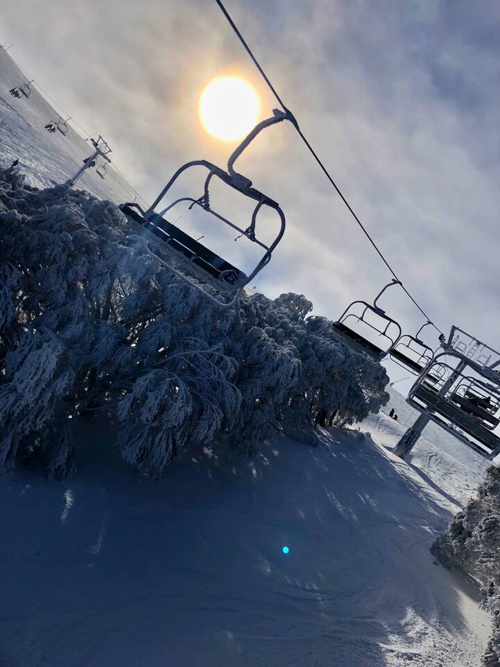 ❄️ Luxury 3 Bedroom chalet just 5min walk to Mt Buller ski lift! Heated floors, fast Wi-Fi, cozy fireplace & family-friendly layout. Sleeps 12 across 3 levels , 75" smart TV, full kitchen, & more. Perfect for families & group trips!