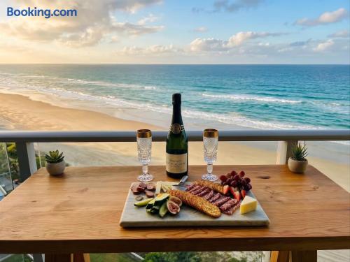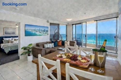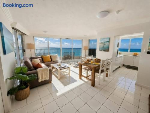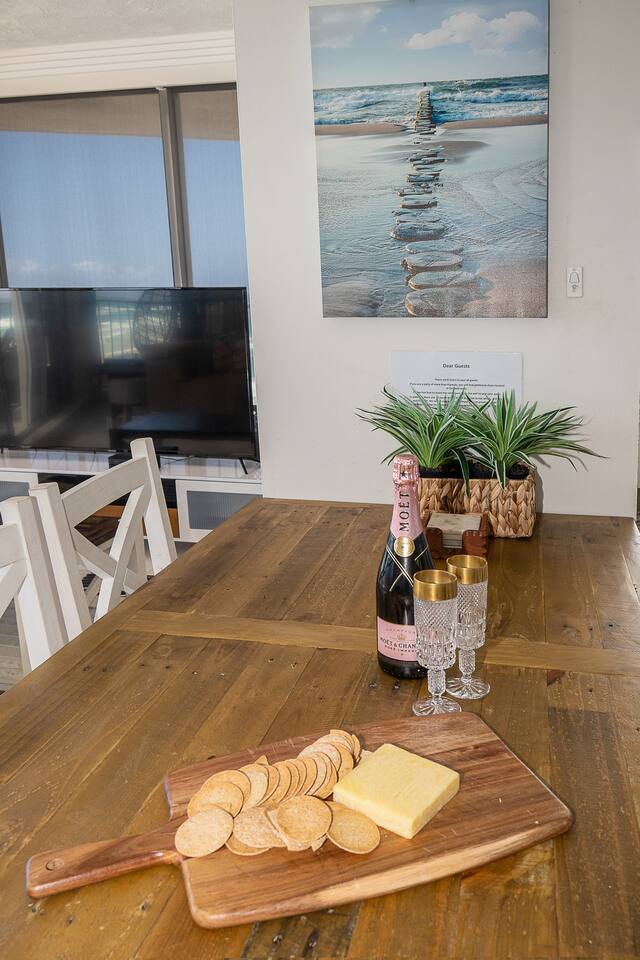 Experience the ultimate beachfront getaway at our 3 bedroom, 2 bathroom apartment boasting stunning views of the ocean. Enjoy full platinum Foxtel on a massive 65" 4K Ultra HD TV and mega-fast Wi-Fi speeds of 100+mps. With new carpet and furniture, our apartment offers comfort and luxury. Wake up to the sound of waves as the patrolled beach is just outside the complex. Take a dip in the heated pool. Situated in the "Grown Ups" end of Surfers Paradise. Note that loud parties are not permitted