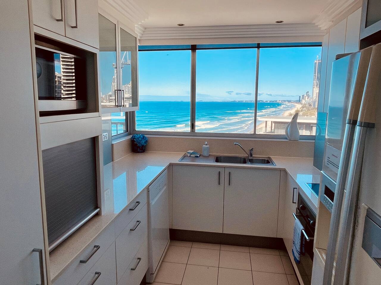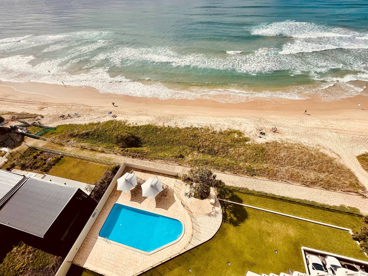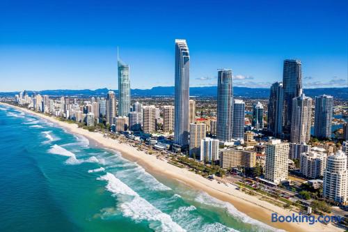 The perfect place to relax. The facilities include a large outdoor pool with child wading area (heated in cooler months) secure underground parking, large BBQ area with BBQ Table & chairs - with Shade cloth cover, direct access to the beach and a grass, fully fenced play area. Laze around the pool whilst hearing the ocean a few metres away. One secure underground basement carpark will be available for use during your stay. Additional visitor parking can be used for up to 6 hours at a time, or parking on the street if you have a second vehicle. Safe, patrolled golden beaches, childrens parks, fabulous shopping, family entertainment and nightlife are all there to be enjoyed. Fancy a coffee? Just cross the road. Experience a trendy cafe or a gourmet restaurant? Tedder Avenue is a short 5 minute walk away.
