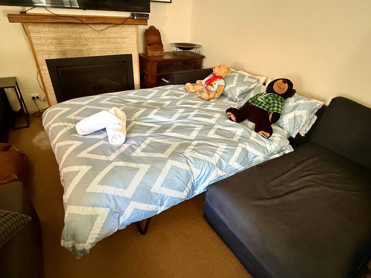 📘 About This Space Top 3 Guest Compliments: Large enough for multi-family stays Fantastic, heating & tech setup Responsive and helpful host ❄️ Welcome to Glacier Chalet – Spacious Ski Luxury Tucked in the Mt Buller village just 450m from the main ski lift, this 3-bedroom, 2.5-bath chalet sleeps up to 14 guests and is ideal for multi-family ski holidays or large groups. Enjoy a private spa, a fully loaded entertainment center with a 75″ HDTV, and a kitchen made for group dining. 🛏️ Sleeping Setup: Master: Queen + 1 bunk bed (sleeps 4) Bedroom 2: 2 bunk beds (sleeps 4) Bedroom 3: Queen (sleeps 2) Lounge: Double sofa bed (sleeps 2), armchair bed (1), single sofa bed (1) 🔥 Features Guests Love: Indoor fireplace & radiant heating 300 Mbps Wi-Fi + Netflix Full kitchen, washer/dryer, highchair & cot 📍 Location: 5–10 min walk to gondola, shops, ski hire Private entrance, fenced yard, paid parking nearby Ski-in/ski-out location with direct village access Great For: Family ski holidays, reunions, friend groups, work retreats